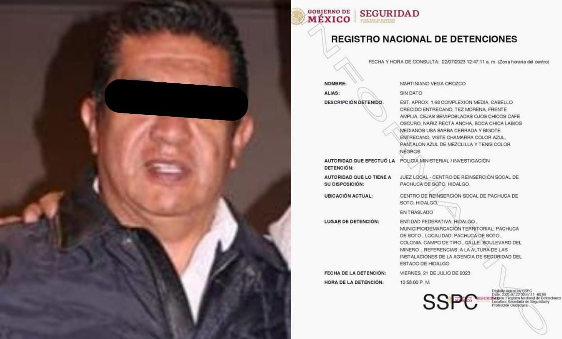 Agentes de la Policía de Investigación de la Procuraduría General de Justicia de Hidalgo llevaron a cabo la detención de Martiniano Vega Orozco, exoficial mayor del gobierno estatal, la noche del viernes pasado. El exfuncionario tenía una orden de aprehensión pendiente desde diciembre del año anterior.